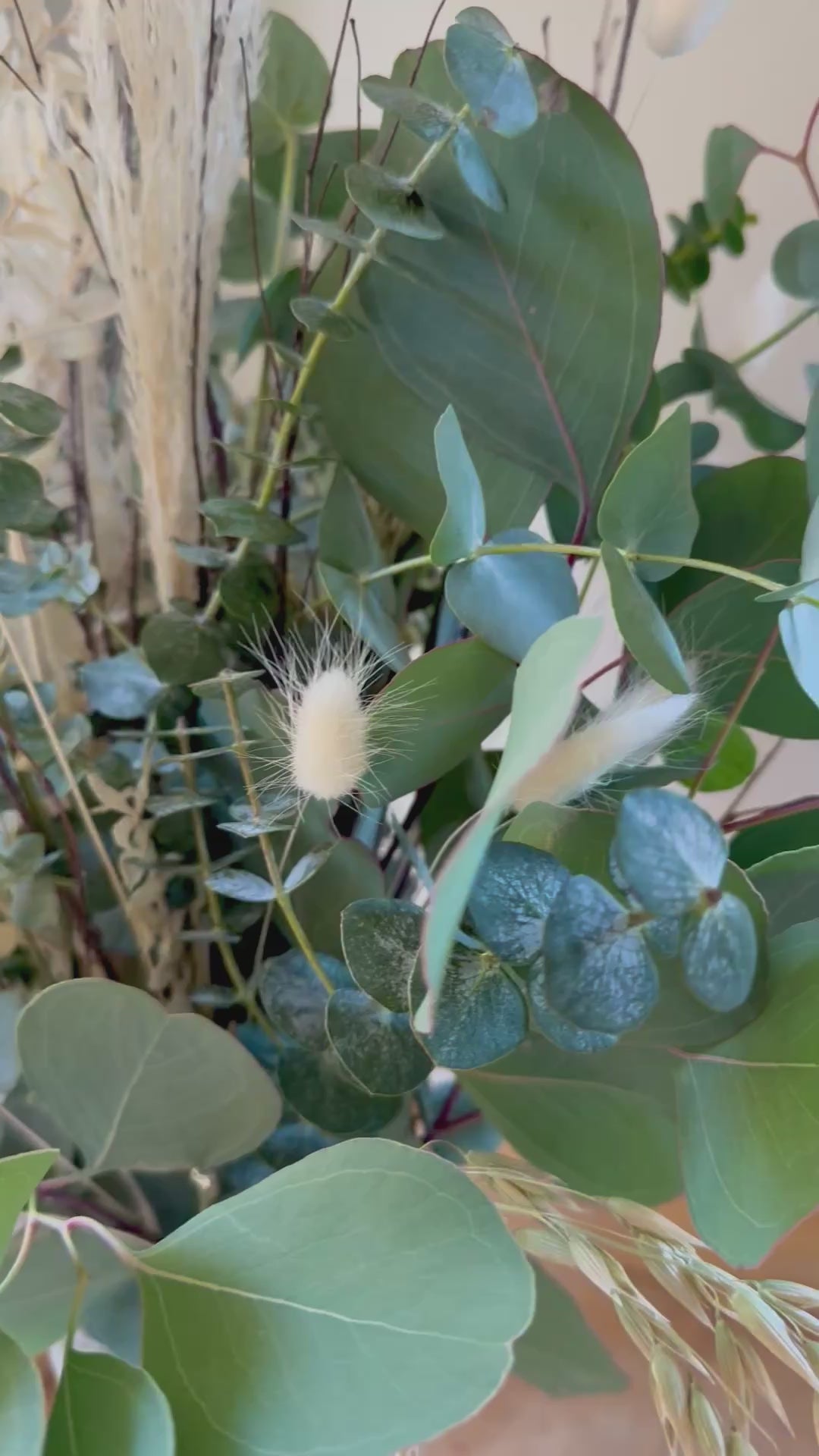 Alongside our candles, we create part fresh, part dried floral arrangements. Fresh eucalyptus is carefully selected to dry naturally over time, paired with dried and preserved blooms chosen for longevity and low waste.